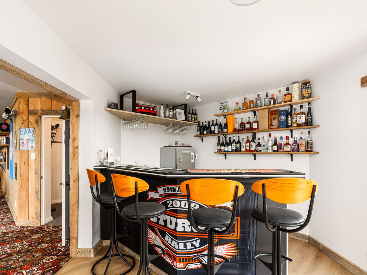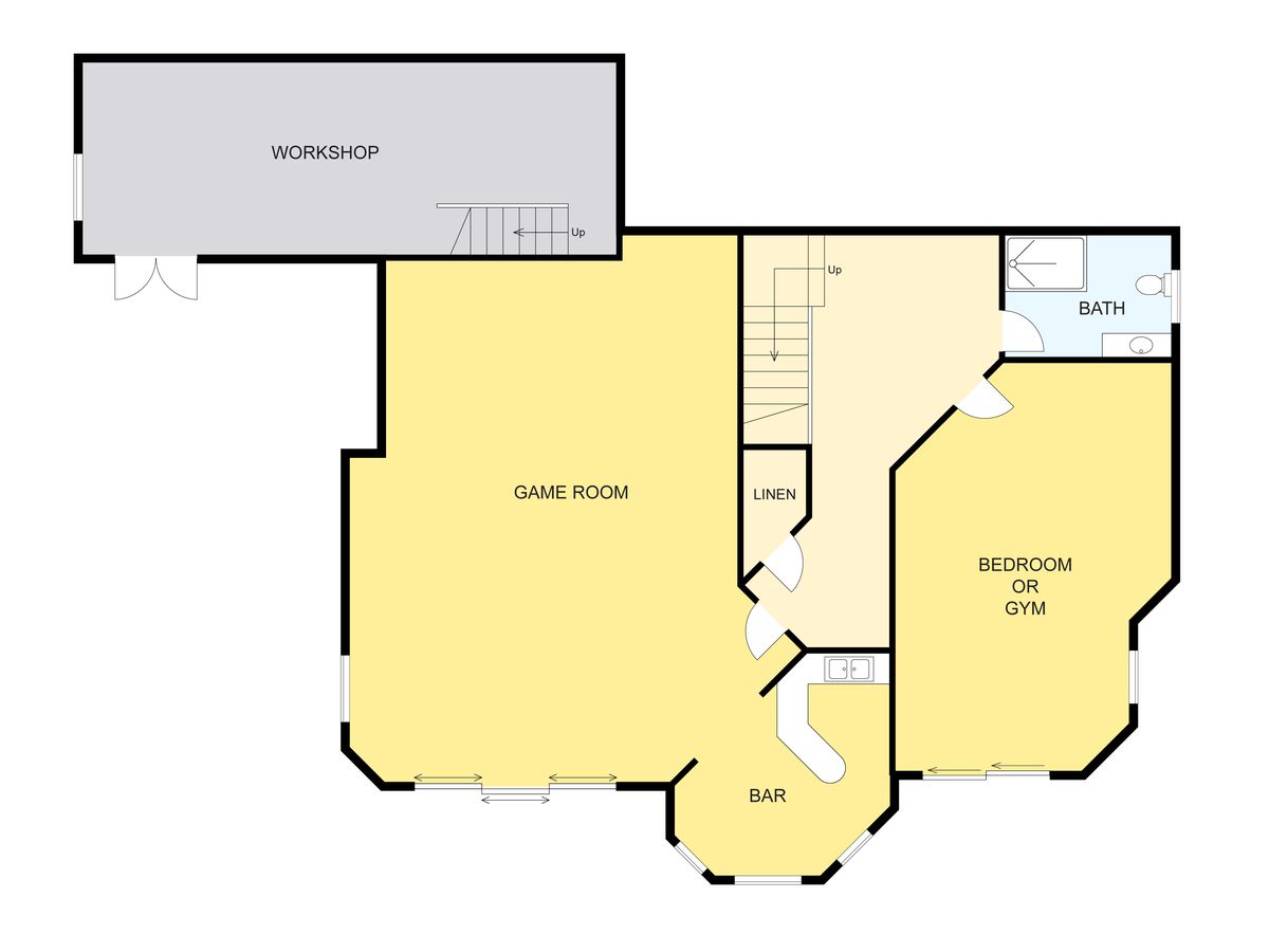 The lower level has a fifth bedroom (or perhaps a gymnasium?), a sauna, a bathroom, a gigantic games room, a bar area with a kitchenette, and access to the backyard/barbecue area.